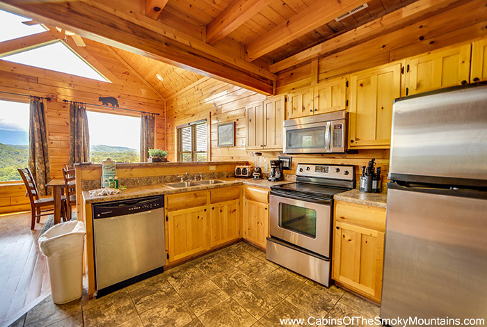 Our cabins feature plush living rooms, gourmet kitchens, hot tubs and one or more porches.